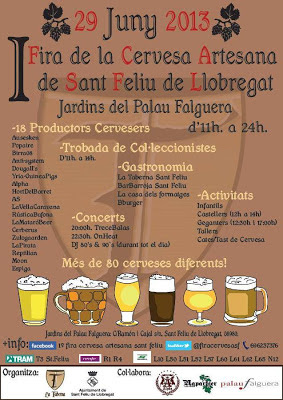 El próximo sábado 29 de junio se celebrará la primera feria de la cerveza artesana de Sant Feliu. El lugar serán los jardines del Palau Falguera de 11 a 24 h. Además por la mañana, los coleccionistas de todo tipo de artículos cerveceros podremos hacer intercambios. También habrá música, comida y actividades para los niños.