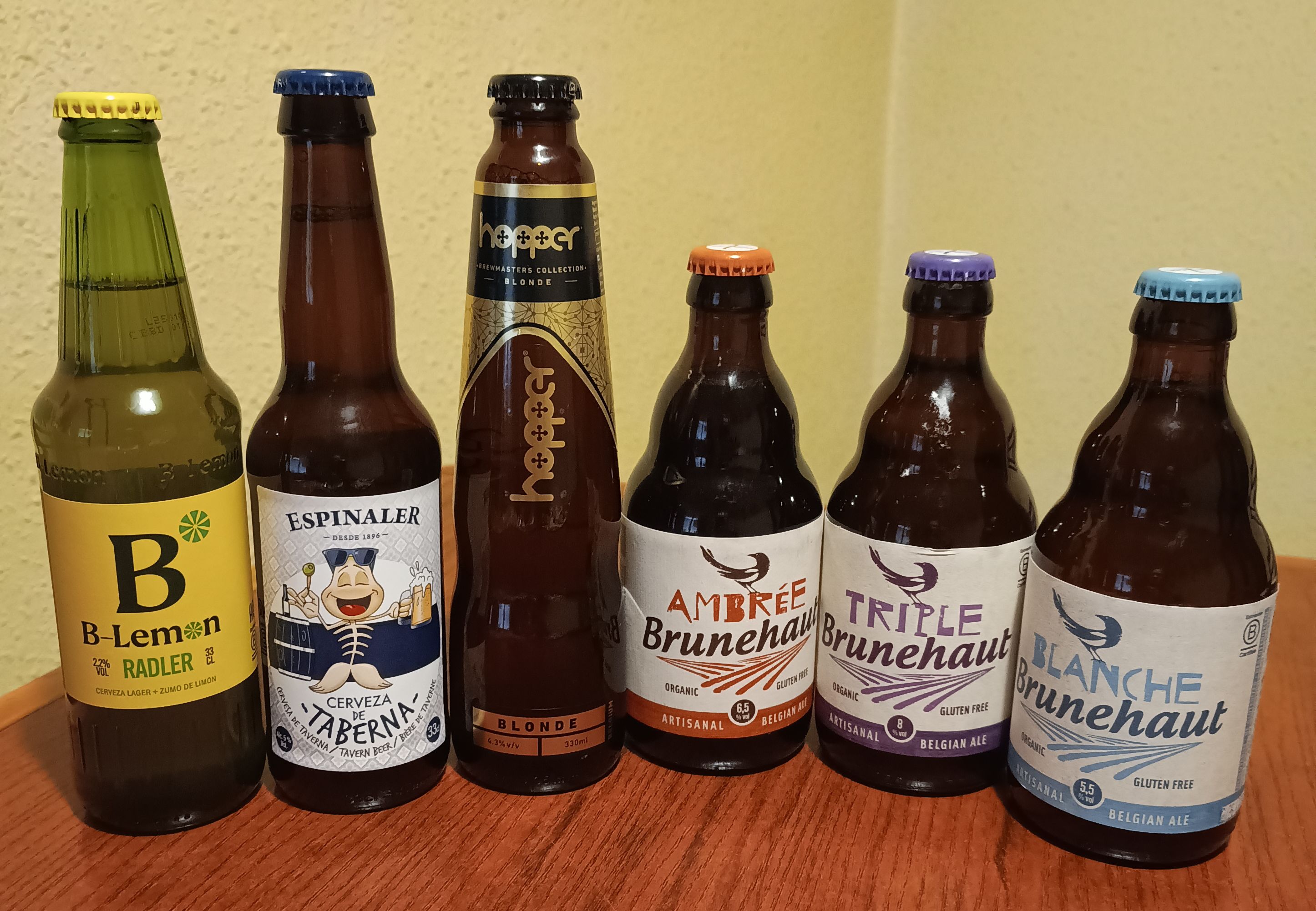 Esta semana he comprado estas seis cervezas. La B-Lemon es la nueva cerveza con limón de Estrella de Galícia, comprada directamente a la cervecera. Espilaner es una marca de productos para hacer el aperitivo entre ellos una cerveza elaborada por la Barcelona Beer Company. El tapón es ligeramente diferente al que ya existía. Hopper es una cerveza belga en una botella muy estilizada. Por últino tres cervezas sin gluten de la Brunehaut con tapones ligeramente diferentes a los que ya existían.